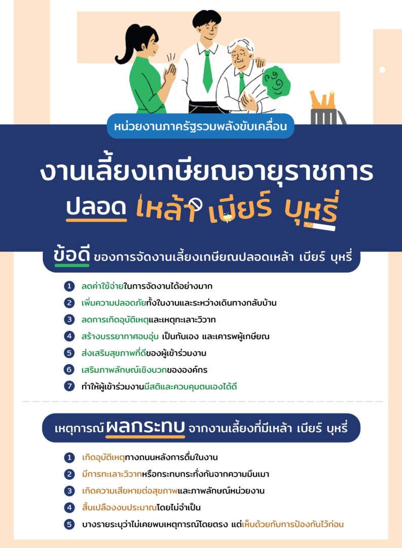 หน่วยงานรัฐ ขานรับ “เกษียณสร้างสุข ปี 68” งดเลี้ยงสุรา กว่า 2,000 แห่ง ส่งเสริมวัฒนธรรม สร้างค่านิยมใหม่ เน้นมุฑิตาจิต ด้วยความเรียบง่าย อบอุ่น และปลอดภัย