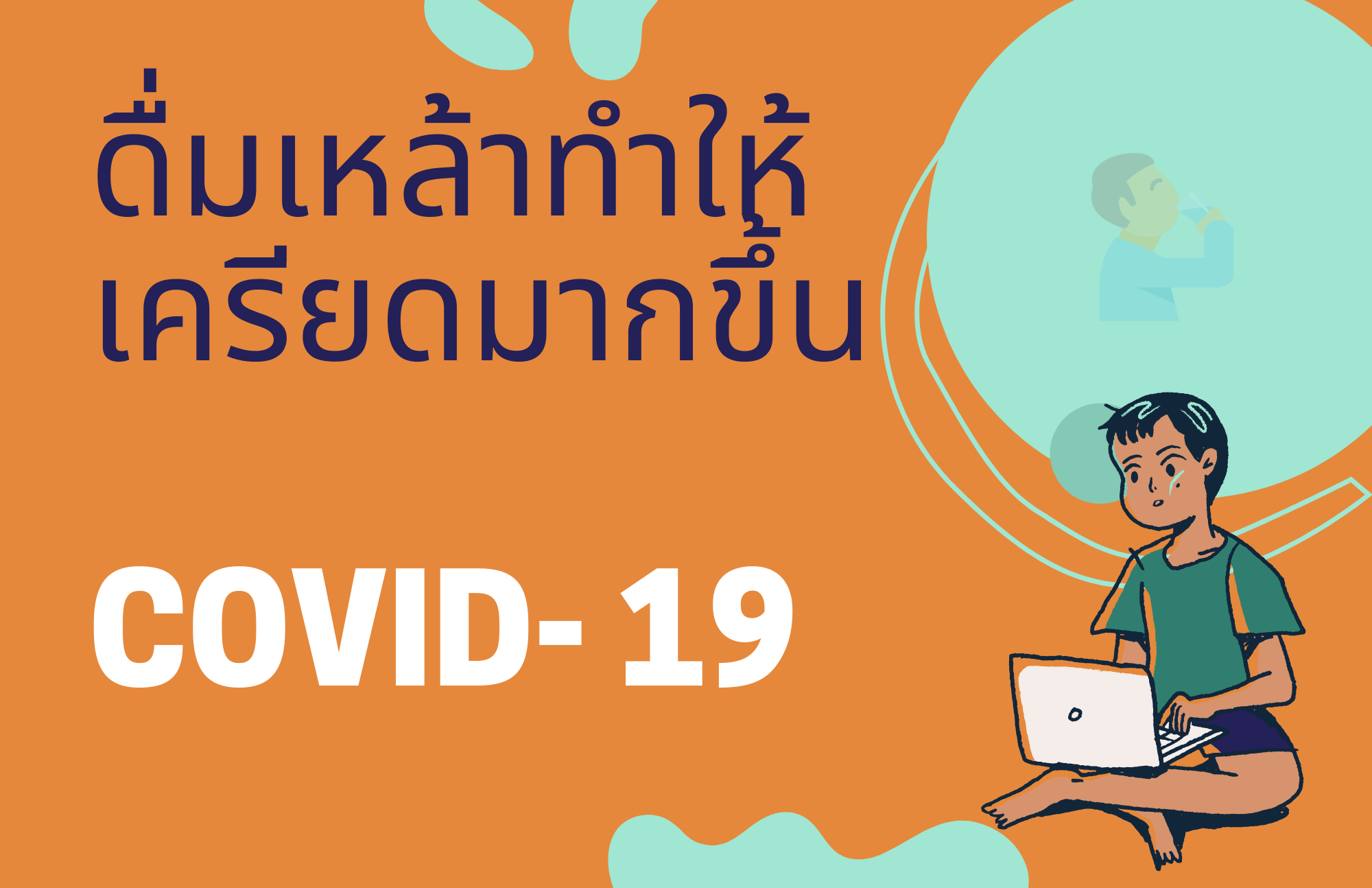 จากสถานการณ์การแพร่ระบาดของโรคโควิด 19 ทำให้หลายท่านเครียดและบรรเทาความเครียดด้วยการดื่มเหล้า ซึ่งดูเหมือนว่าจะทำให้คลายเครียดได้ แต่ในระยะยาวแล้วเครื่องดื่มแอลกอฮอล์ไม่ได้ช่วยให้คลายเครียด แต่ยังทำให้ผู้ดื่มมีสุขภาพและจิตใจแย่ลงไปด้วย ดังนี้